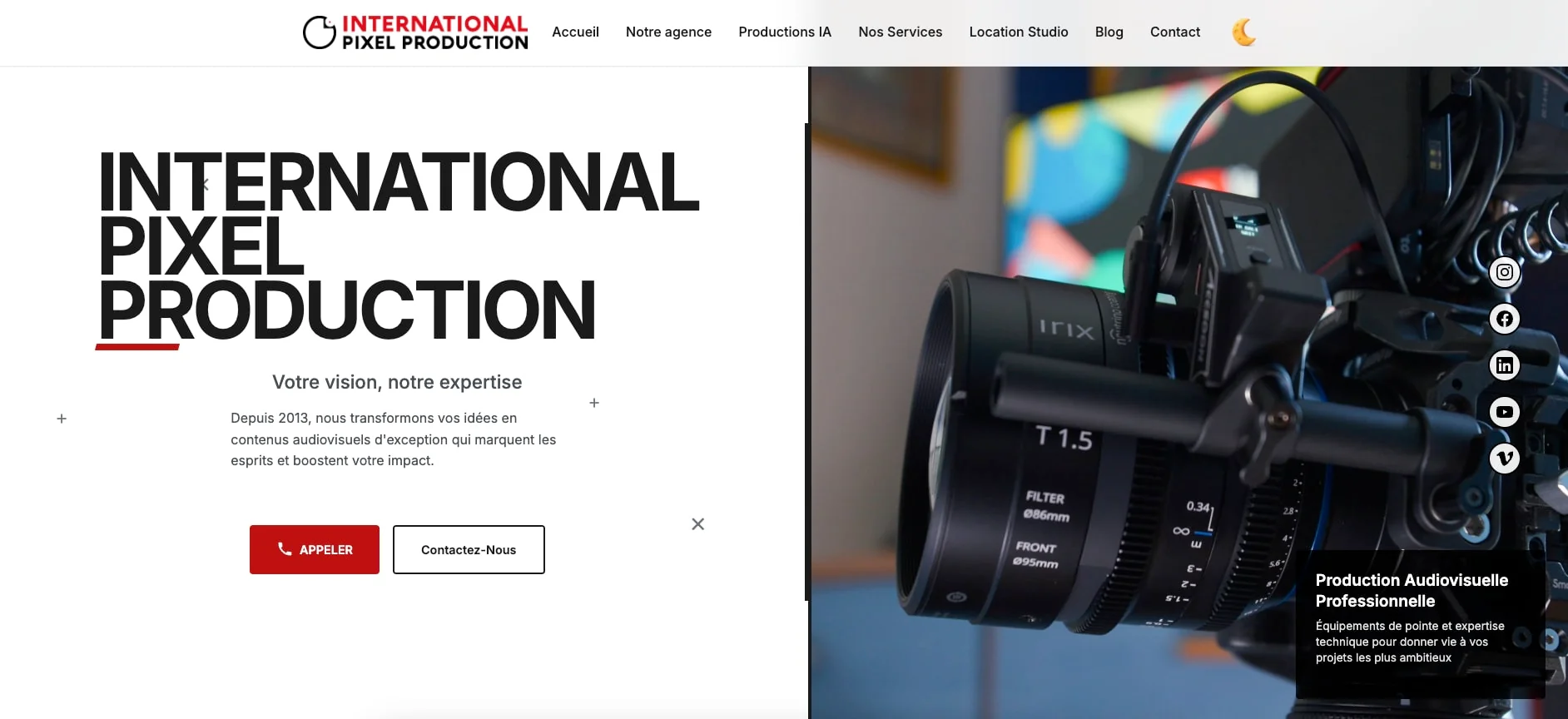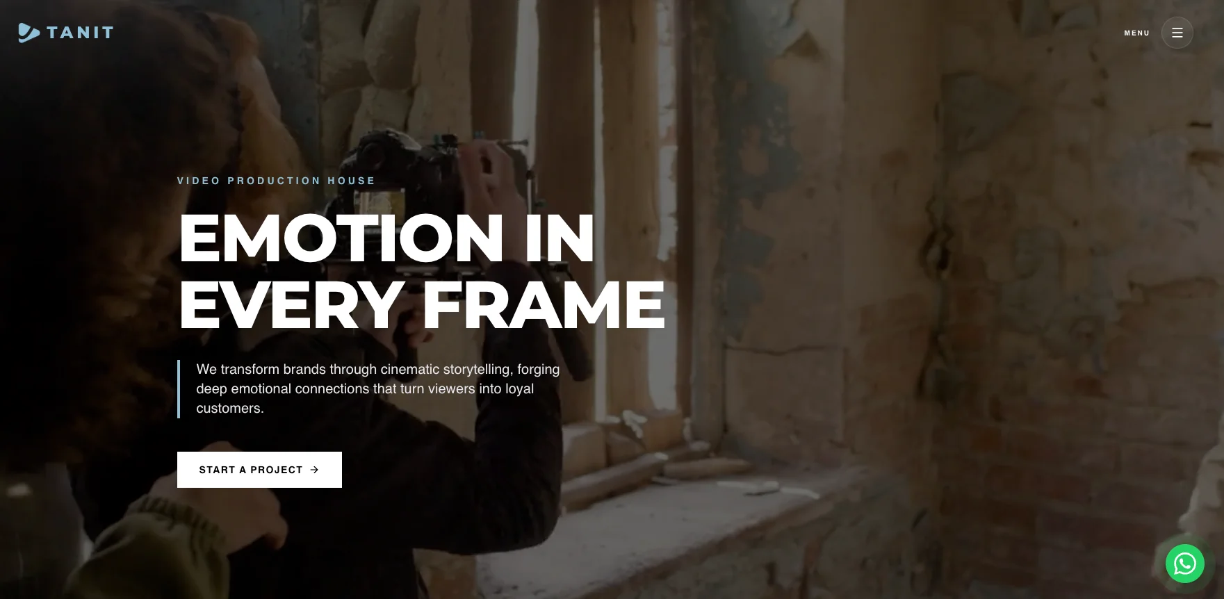 Dark-themed, cinematic website with smooth animations and clear pathways to contact.